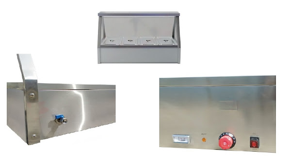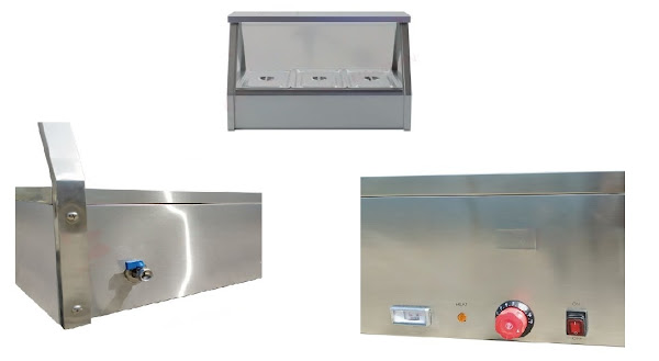 Electric Bain-Marie Showcase BMS-E3 berfungsi untuk memanaskan makanan seperti sup dan sayuran, bisa juga untuk melelehkan coklat dan mentega. Dilengkapi dengan varian beberapa tungku, thermostat dan lampu indikator. Bahan pan terbuat dari stainless steel anti karat sehingga aman untuk pangan. Cocok untuk penyajian makanan panas di rumah makan, hotel, kantin, atau cafe yang menyajikan makanan secara prasmanan.