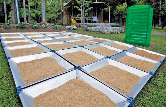 Lanuza (1967) melakukan proses pengeringan dengan cara penjemuran dan pengeringan buatan pada berbagai suhu dan kadar air awal. Hasilnya, semakin tinggi suhu pengeringan (sampai 60 derajat C), semakin banyak jumlah air yang uapkan dengan waktu pengeringan yang semakin cepat. Namun, konsekuensinya adalah penggunaan bahan bakar yang semakin banyak dengan semakin tinggi suhu yang digunakan.