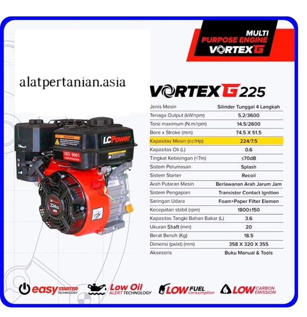 Mesin serbaguna yang memiliki performa penuh tenaga dengan desain yang ringan dan bentuk ringkas memudahkan dalam pemasangan mesin dengan berbaga macam peralatan. Memiliki tenaga 7,5 Hp dan torsi besar namun irit bahan bakar serta ramah lingkungan menjadikan mesin ini pilihan yang tepat.