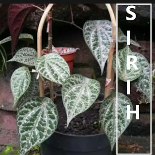 Bagian bawah daun berwarna merah hati cerah, Daunnya berlendir, berasa sangat pahit, beraroma wangi khas sirih, batangnya bersulur dan beruas dengan jarak 5-10 cm. Berbeda dengan sirih hijau, tanaman sirih merah awalnya dikenal sebagai tanaman hias saja. Kini banyak digunakan sebagai salah satu alternatif tanaman obat. Manfaat dari daun sirih cukup beragam antara lain sebagai obat gigi dan mulut, sariawan, abses rongga mulut, luka bekas cabut gigi, penghilang bau mulut, batuk, serak, hidung berdarah, keputihan, antiseptik, wasir, tetes mata, dan lain-lain.