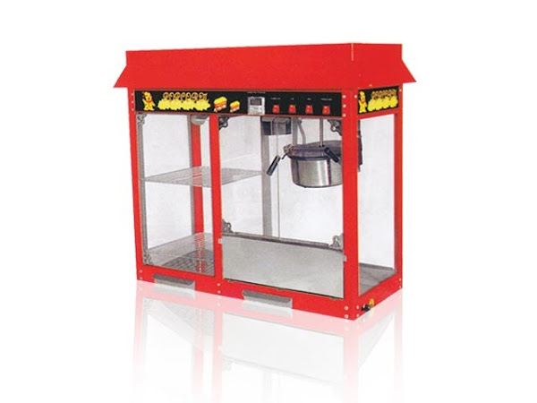 Menggunakan daya gas dan elektrik untuk memutar pengaduk bowl. Dengan menggunakan mesin pembuat Popcorn, proses pembuatan makanan ringan ini menjadi lebih mudah dan efisien. Desain elegan dan body yang kokoh. Wadah yang berputar membuat pemanasan lebih merata dan mempunyai dengan tuas untuk menuang hasil Popcorn yang telah matang.